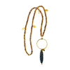Egyptian-inspired necklace with navy blue agate beads, turquoise and red Howlite beads, gold zamak beads and two lacquered zamak pieces. It also has a Zamak crescent with a matt gold bath as its centerpiece, which makes this necklace a spectacular piece. Combine it with your favorite look look!